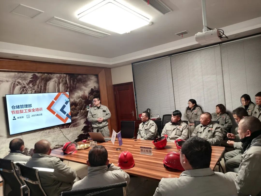 泰兴基地:会上制定了详细的复工复产方案和安全检查计划。会后组织专人对生产设备、管道阀门、消防设施等进行了全面排查和维护,确保设备设施处于良好状态。通过开展“节后复工,安环为先”培训活动,迅速引导员工进入工作状态,掌握本职工作所需的安全知识和技能。