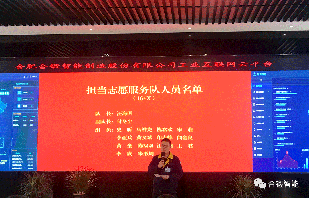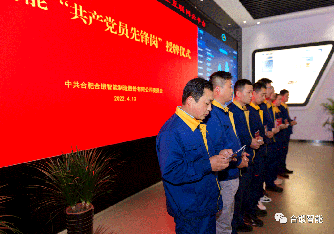 “我是来自加工作业党支部的黄奎,我承诺:加强数控镗铣床班组管理,按时按质完成生产任务,不断提高工作效益;关键时候勇担当,带领班组在企业需要的时候第一个站出来;做实事、求效率,带领班组打造“5S”现场管理示范岗标杆班组。”4月13日中午,合锻智能党委“党员先锋岗”授牌仪式在“FOCUS高端成形装备工业互联网平台”中心隆重举行。
