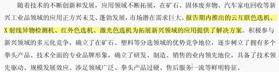 另外通过回顾近几年色选机业务的发展历程,初步表明公司具备持续拓宽产品应用边界的能力。