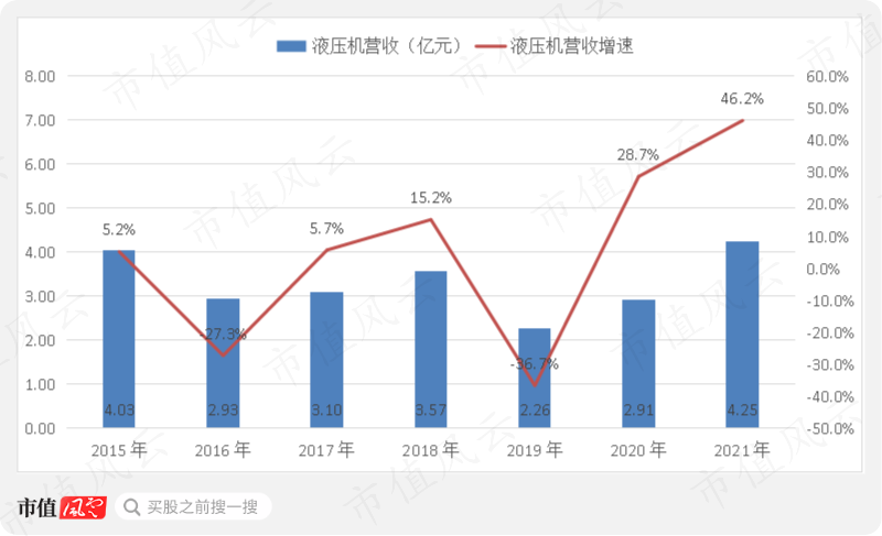 从业绩来看,2021年液压机营收增速创近七年新高,营收规模也对应创新高。