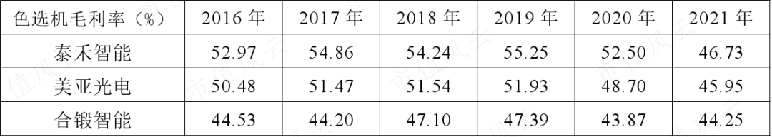 从色选机毛利率角度来看,2019年以来,同行毛利率均出现明显下降,2021年公司毛利率不降反增。