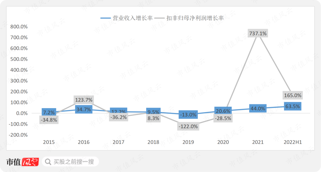 从整体业绩来看,2021年以前,营收表现平平无奇,2021年出现明显增长,2022年上半年营收规模已经接近2020年全年。