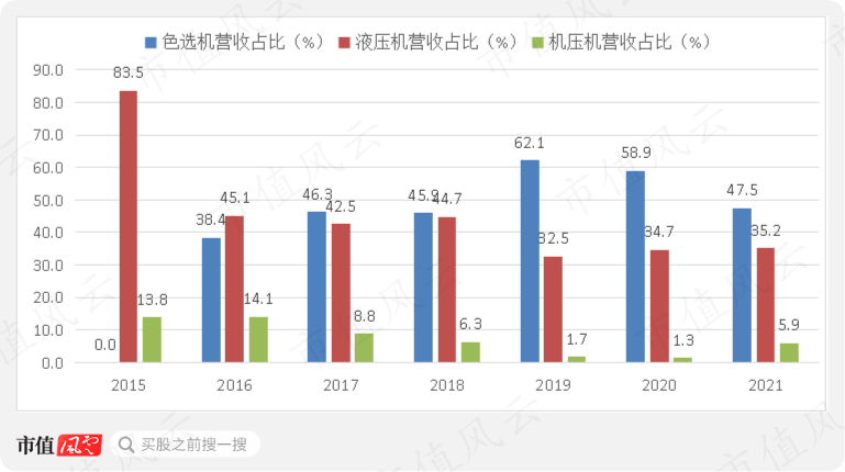 当前营收主要来自于液压机、机压机和色选机。其中色选机营收占比相对较高,其次为液压机,机压机营收规模较小。