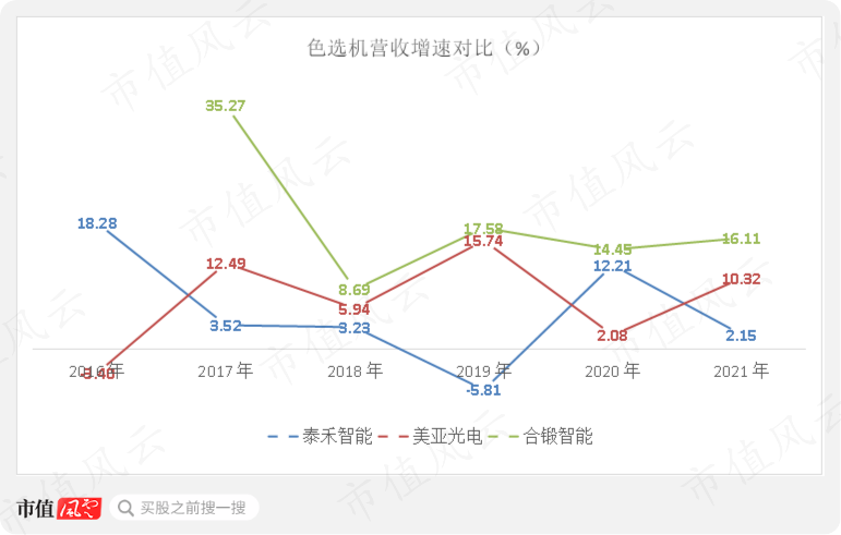 从营收增速来看,近几年公司色选机营收增速较为平稳,且增速基本领先同行。