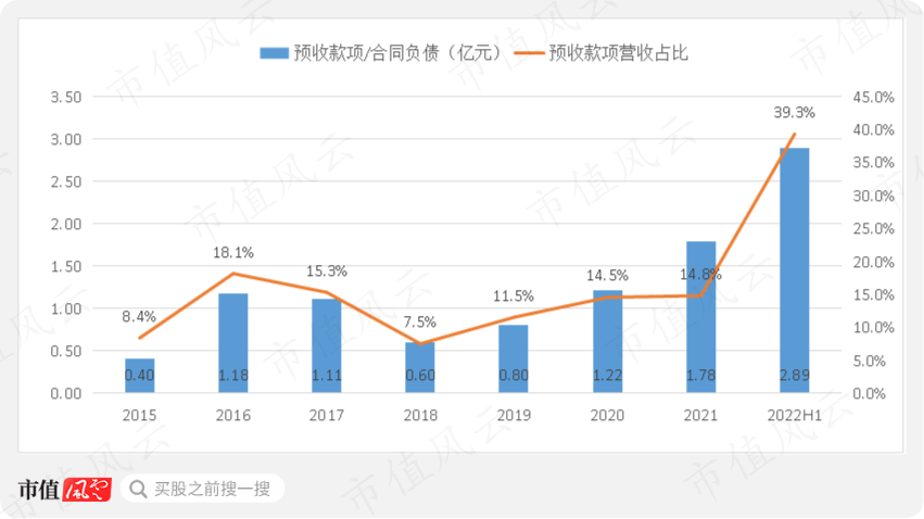 作为营收增长的先行指标,预收款项(合同负债)近两年增长明显,主要系订单增加、预收商品款增长所致,2022年上半年的合同负债金额是2020年两倍以上。
