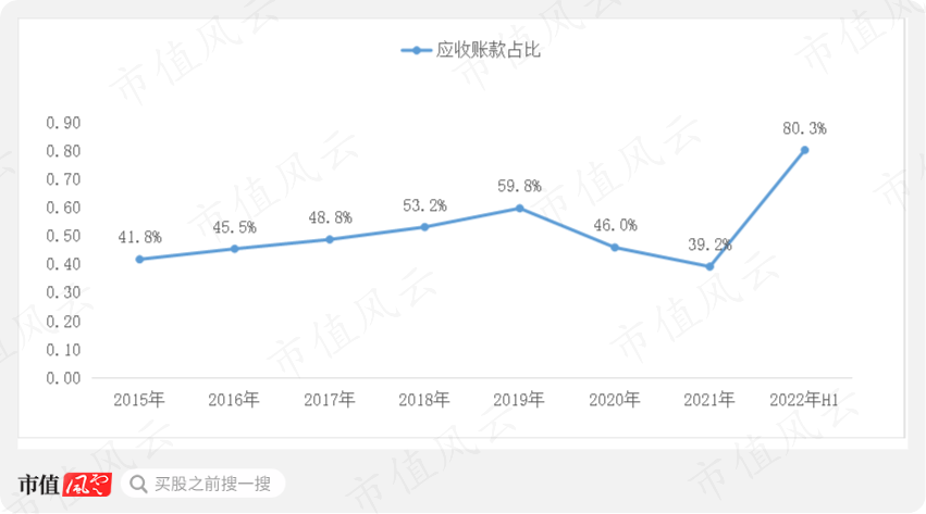 历史上应收账款营收占比整体较高,2022年上半年应收账款营收占比高达80%,2020年和2021年有所下降主要受2020年大力推进清收导致。