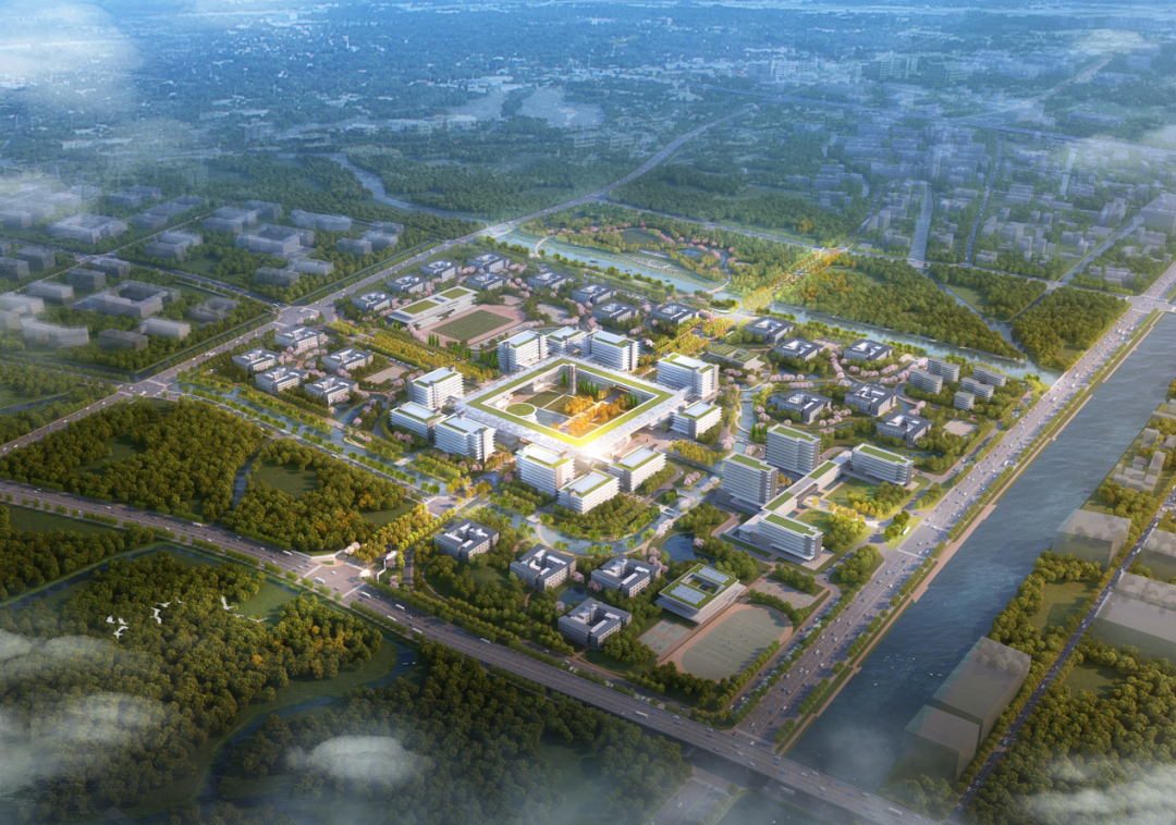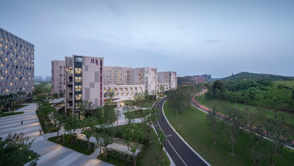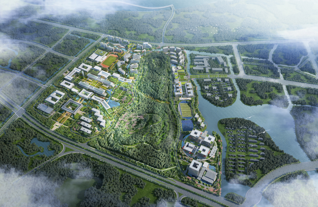 校区总体规划借鉴南京大学鼓楼校区的多重短轴线的布局方式,以此实现空间的连续性和整体性,同时巧妙融合周围山水和城市环境。校园核心区域的教学行政综合体,位于北侧生活区与南侧运动科研区之间,有效结合地形特点与功能需求,确保了空间利用的最大化。