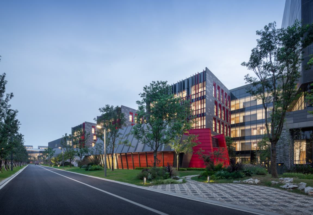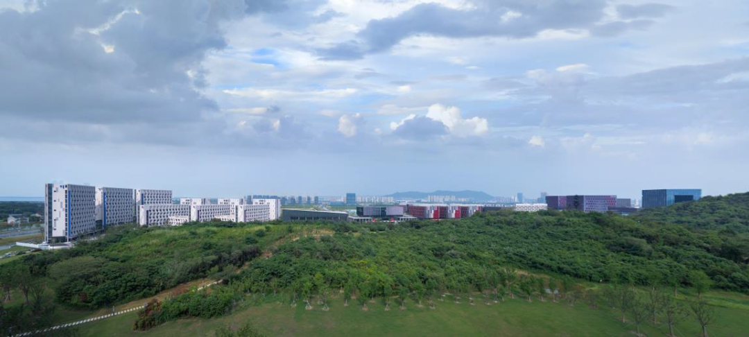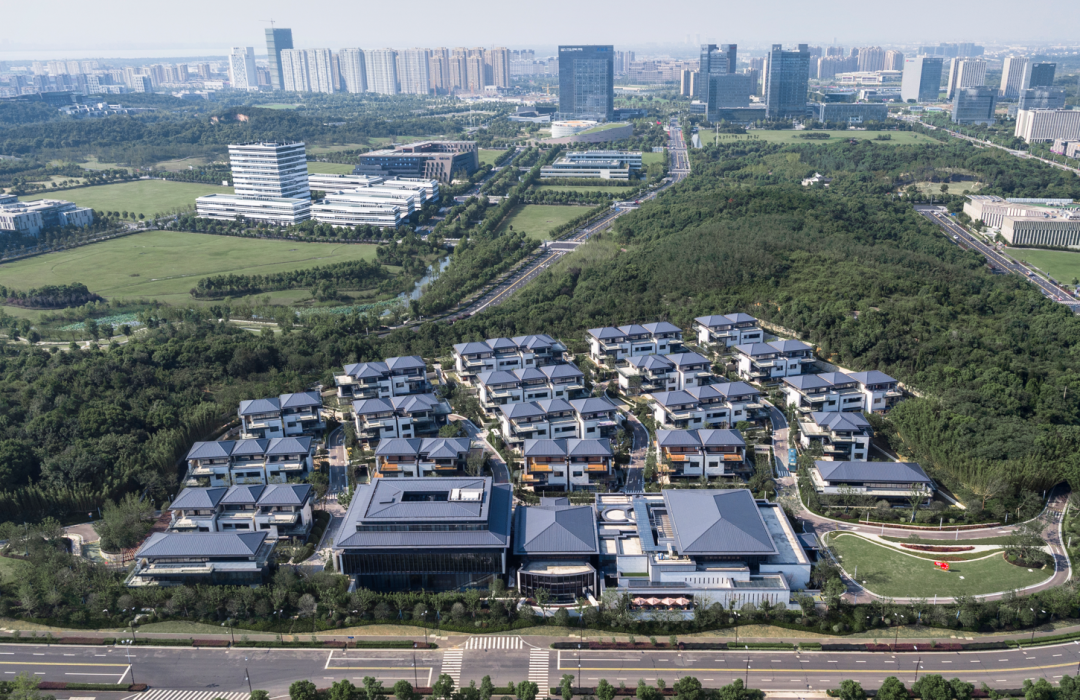 南京大学苏州校区位于苏州市高新区科技城,南邻城市主干道——太湖大道,北望八百余米外的太湖,西为城市干道——长巷路,东侧为自然水系。用地被庄里山分为东、西两区,校区建设统一规划,分步实施,东区作为首期先行建设。