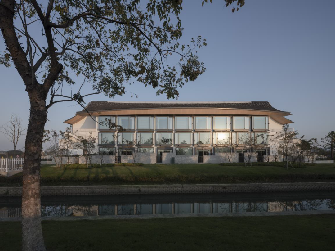 苏州悦季望湖酒店位于北太湖之滨,西望太湖,北依田园。设计从苏州传统建筑中汲取灵感,以营宅、筑园、叠山、理水为设计理念,创造了一个自然与人文和谐共生的“世外桃源”。
