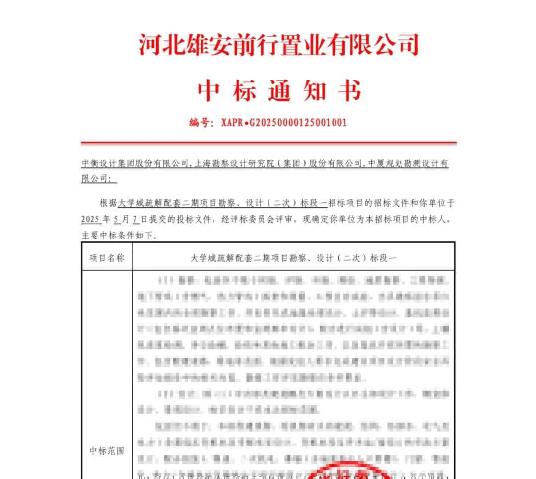 继雄安新区启动区西部小学项目之后,近日中衡设计凭借卓越的专业实力与丰富的项目经验再度脱颖而出,成功中标雄安新区大学城疏解配套二期项目勘察设计标段一,为雄安新区的建设发展再添强劲助力。