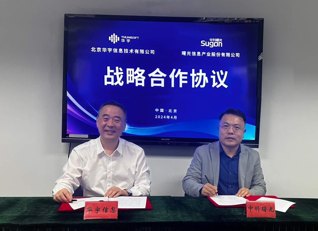 4月30日,北京华宇信息技术有限公司(以下简称“华宇”)与曙光信息产业股份有限公司(以下简称“中科曙光”)举行战略合作签约仪式,双方将在高端计算、人工智能等领域,通过产品、技术、市场、解决方案和项目等方面的合作,共同服务客户,携手开启创新发展新篇章。