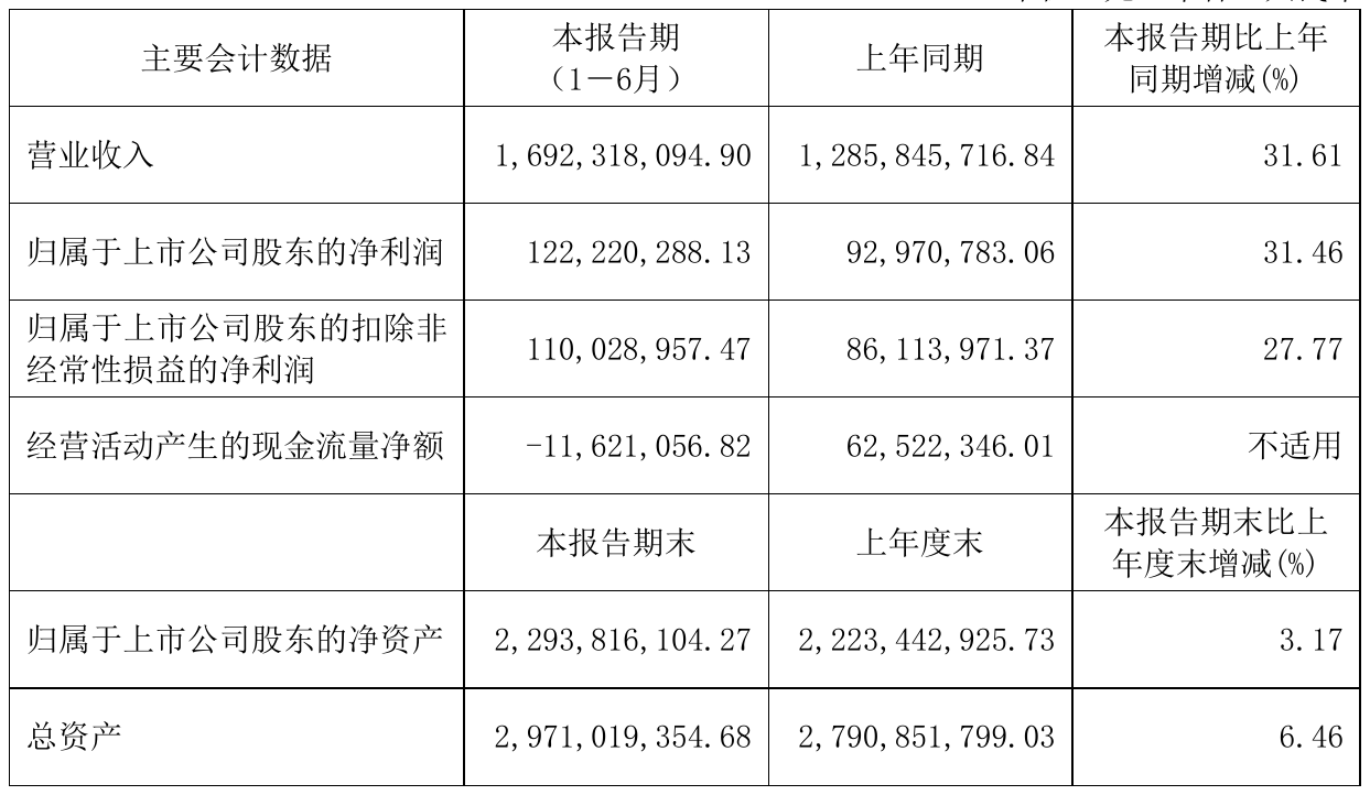 挖贝网8月31日,爱普股份(603020)近日发布2021年半年度报告,报告期内营业收入1,692,318,094.90元,同比增加31.61%;净利122,220,288.13元,同比净利增加31.46%。