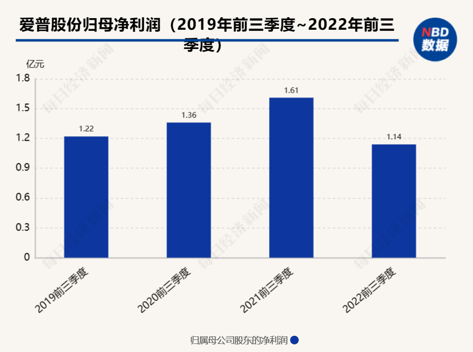 2022年前三季度,爱普股份实现净利润1.14亿元,同比下降29.36%。