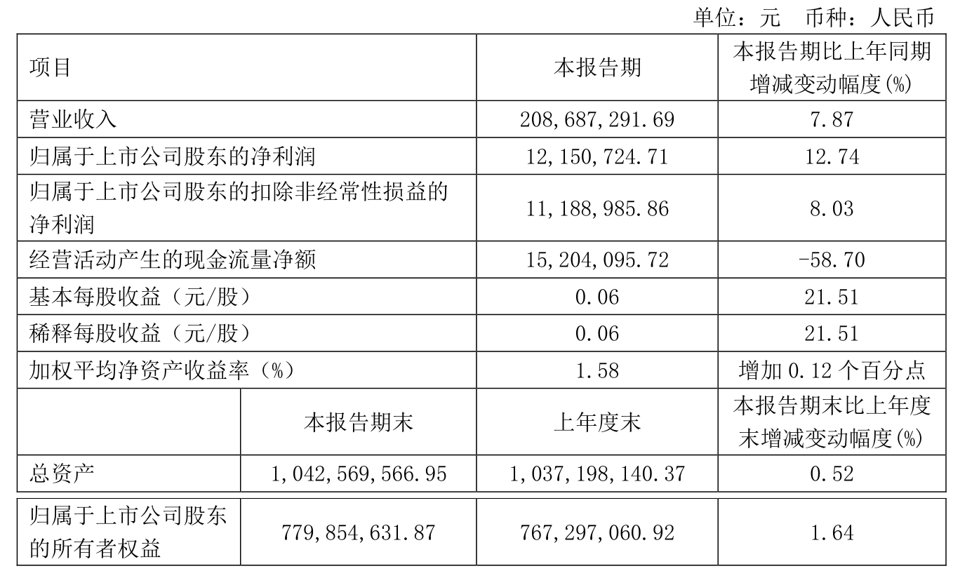 新通联(603022)4月26日披露2024年一季报。2024年第一季度,公司实现营业总收入2.09亿元,同比增长7.87%;归母净利润1215.07万元,同比增长12.74%;扣非净利润1118.90万元,同比增长8.03%;经营活动产生的现金流量净额为1520.41万元,同比下降58.70%;报告期内,新通联基本每股收益为0.06元,加权平均净资产收益率为1.58%。