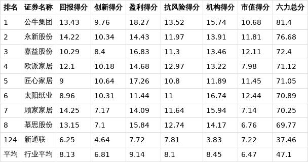 从所属行业角度来看,在申万一级轻工制造行业的163家上市公司中,新通联位列行业第124位,行业平均分为47.1分。