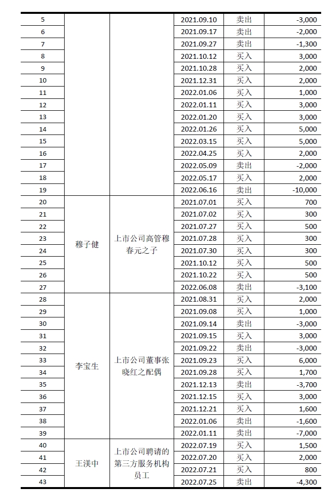 另据大豪科技4月6日晚间发布的《关于终止重大资产重组事项相关内幕信息知情人买卖股票情况的自査报告》,2021年7月1日至2022年6月8日期间,穆春元之子穆子健6次买入公司股票,共计买入3100股,并1次卖出3100股。