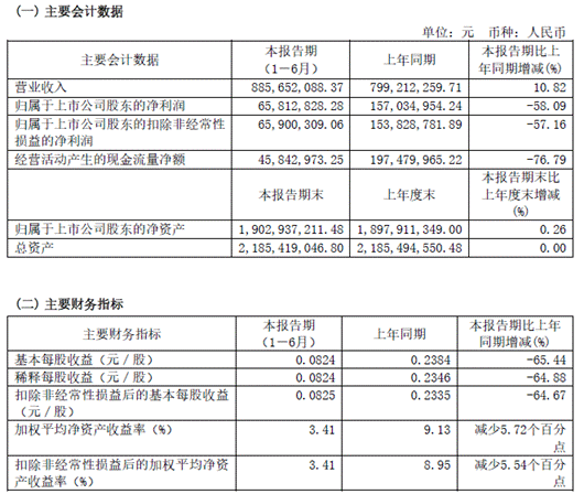 半年报显示,千禾味业上半年基本每股收益为0.0824元,比上年同期减少65.44%,加权平均净资产收益率为3.41%,比上年同期减少5.72个百分点。