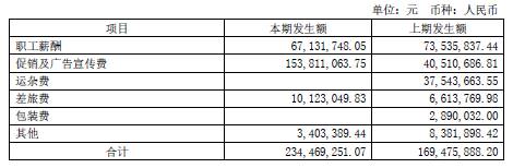 今年上半年千禾味业的销售费用增加明显,其中促销及广告宣传费达1.54亿元,同比增加1.13亿元,增长279.68%,主要系本期促销宣传及广告费用增加所致。