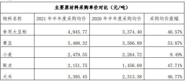 同时,原材料价格上涨也大幅挤压了调味品企业的利润空间。调味品产品所用原材料主要为黄豆、大豆、大米等农副产品,受中美贸易战、疫情等因素影响,大宗货品价格居高不下。就拿千禾味业来说,食用大豆粕、黄豆、麸皮、大米等原材料价格大幅上涨,采购价涨幅达到50%左右。