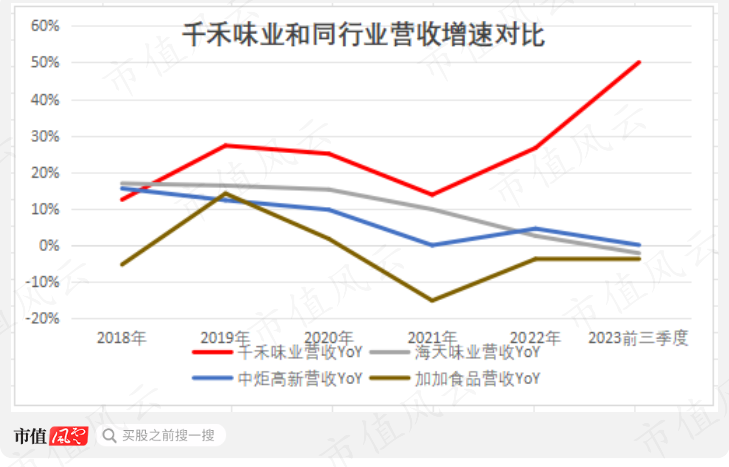 自2019年以来,千禾味业整体的营收增速领先同行。