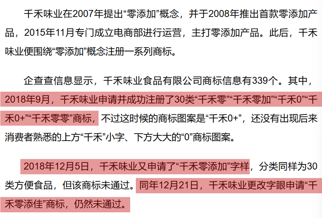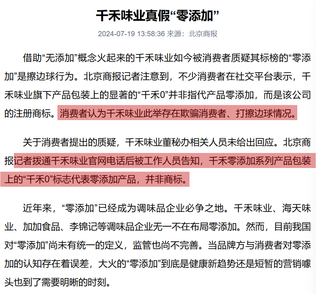 千禾官方否认“千禾0”是商标,坚称其代表的是零添加产品。