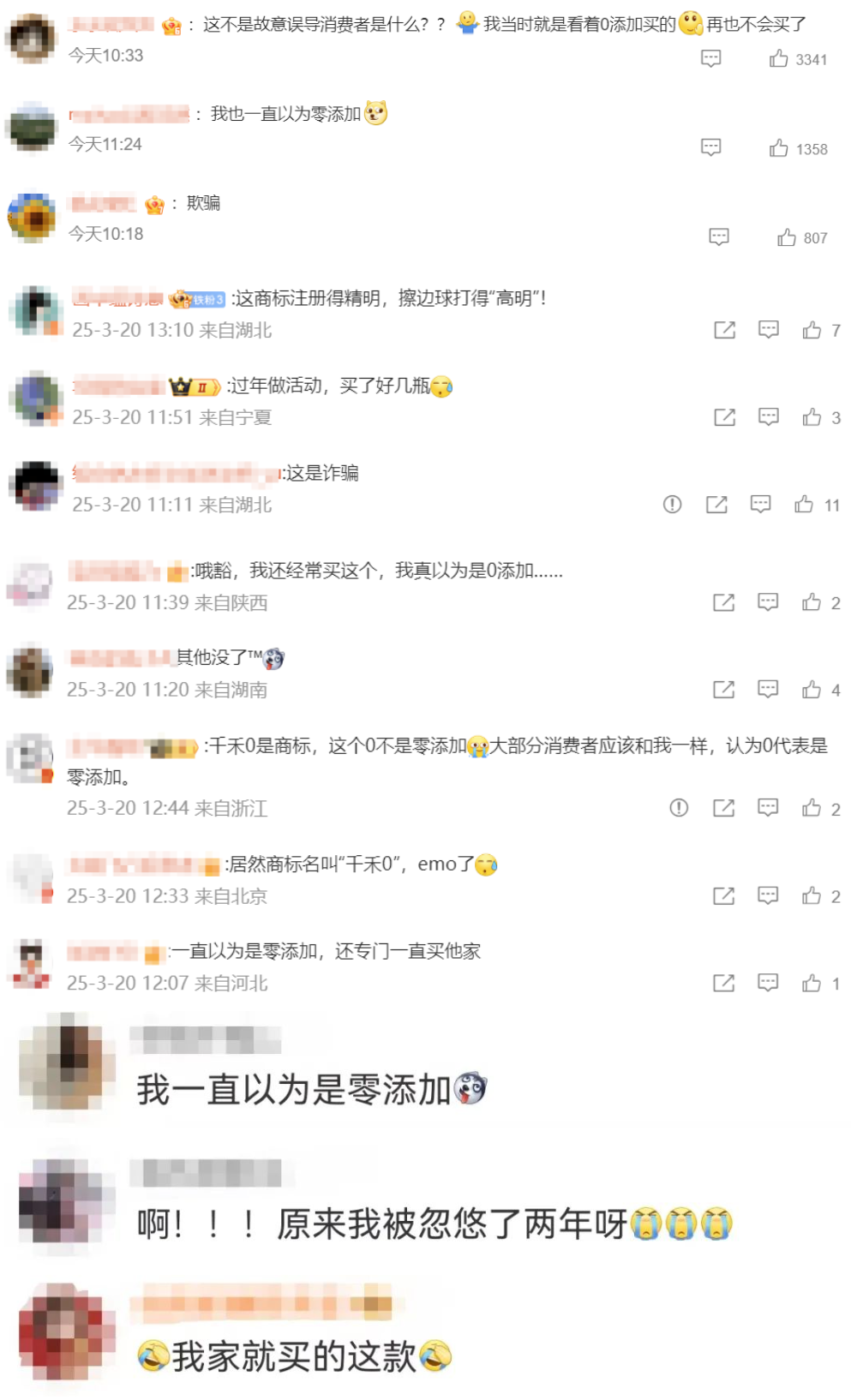 然而,消费者似乎对此并不认同。许多网友留言表示:“我一直以为是‘零添加’”,“原来我被忽悠了两年呀”,“这是诈骗”。