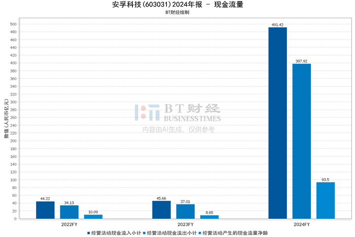 在现金流量方面,2024年安孚科技经营活动产生的现金流量净额为9.35亿元,同比增长8.12%。这反映了公司销售规模的扩大和货款的增加。投资活动现金流显著改善,主要由于上期子公司购入定期存单,而本期未购入。筹资活动现金流减少,主要由于本期分红增加。