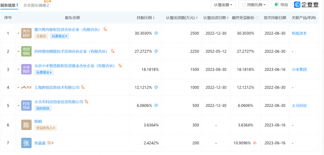 然而,苏州炯熠第一大股东是嘉兴隽舟股权投资合伙企业(有限合伙),持股30.3%。