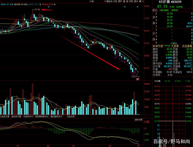 5月5日泛微网络股票复牌,ST泛微一字跌停,本周五又一字跌停,收盘价37.75元。