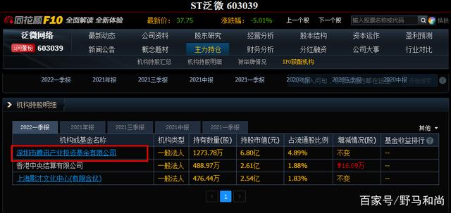 从该股今年一季度的其他机构持股情况来看,腾讯公司持有泛微网络1273.78万股,占比流通股份额有4.89%。经查询,2020年7月,腾讯产业投资基金出资7.71亿元获得泛微网络公司5%的股份。