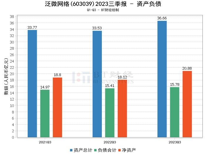 在资产负债方面,泛微网络2023年三季度的总资产为36.66亿元,相较于上年度末的35.41亿元,总资产有所增长。负债合计为15.78亿元,相较于上年度末的16.3亿元,负债有所减少。净资产为20.88亿元,相较于上年度末的19.11亿元,净资产有所增长。资产负债率为43.04%,相较于上年度末的46.04%,资产负债率有所下降。