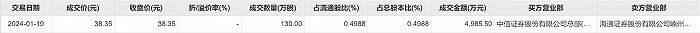 1月19日,泛微网络今日大宗交易成交130万股,成交额4985.5万元,占当日总成交额的47.47%,成交价38.35元,较市场收盘价持平。