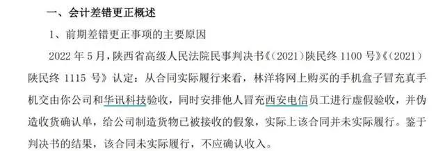 公告显示,修订年报的原因,是公司此前在苹果手机采购中遭遇合同欺诈,由于合同实际未能履行,因此不能确认收入。
