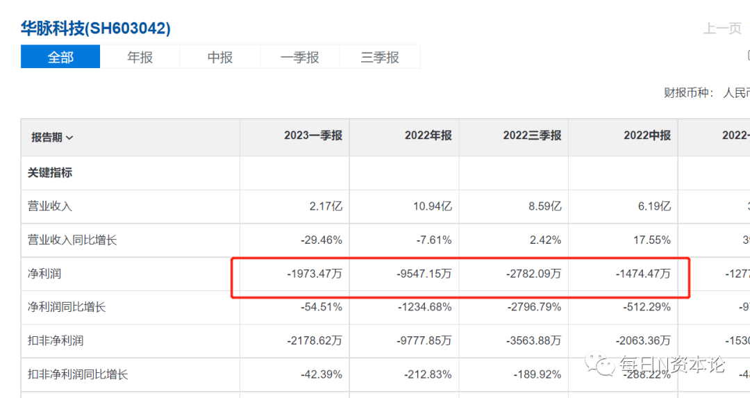 坏消息是,2022年,华脉科技的业绩开始大幅下滑,营收10.94亿元,同比下跌7.61%;净利润亏损9547.15万元,同比大跌1234.68%。今年一季度,其业绩下滑势头有加速迹象,营收2.17亿元,同比大跌29.46%;净利润1973.47万元,同比大跌54.51%。