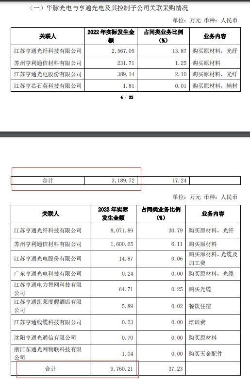 总的来看,2023年,华脉光电从股东亨通光电方面进行关联采购合计9760.21万元,同比增长205.99%。