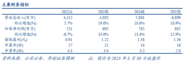 ?各项费用占比基本稳定,23年上半年公司毛利率为29%(+1pct),净利率为5.6%(+1.8pct),成本费用率方面,销售费用率11.1%,基本不变,管理费用率9.8%(-0.33pct),研发费用率1.9%(-0.53pct)。