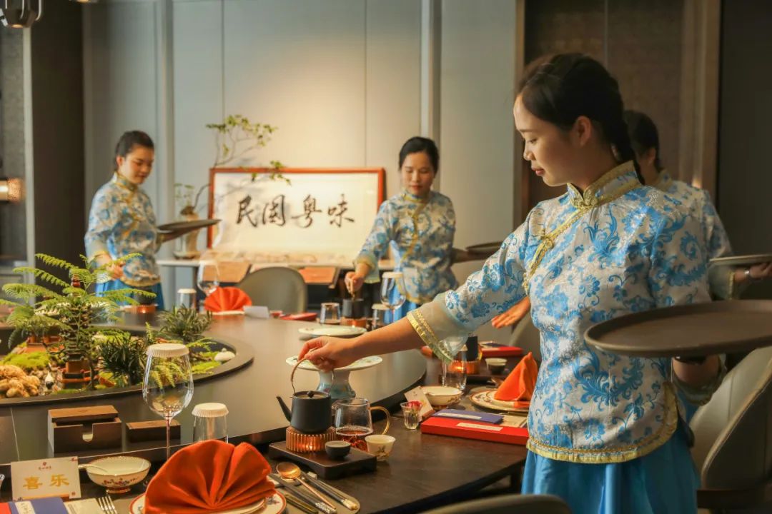 创造消费新场景。以传承弘扬岭南饮食文化、讲好粤菜故事为己任,联合史学家、美食家等,匠心推出“南越王宴”等历史文化名宴;结合“英雄花开英雄城”主题,以木棉花入馔,推出“岭南红棉宴”,将红棉元素贯穿到用餐场景细节中,与岭南书画、广绣广彩、微缩造景、花城书房充分融合,精心营造具有岭南文化气息的红棉文创主题用餐空间,赋予文化宴席新时代的生命力,构筑起一脉相承、贯通古今的粤菜发展完整体系。