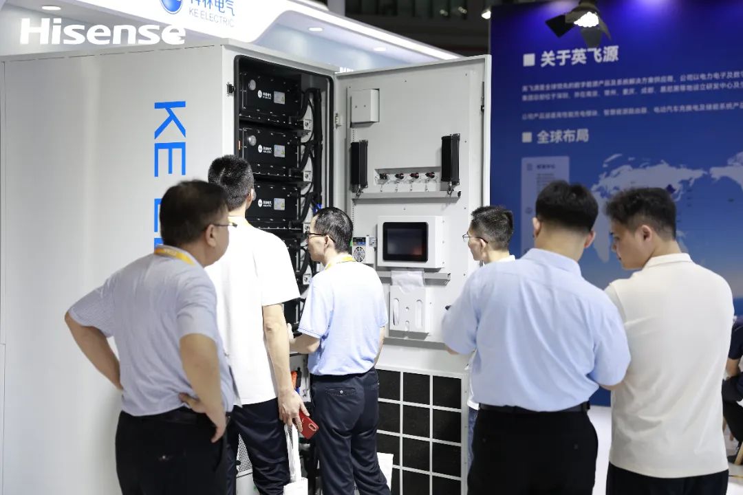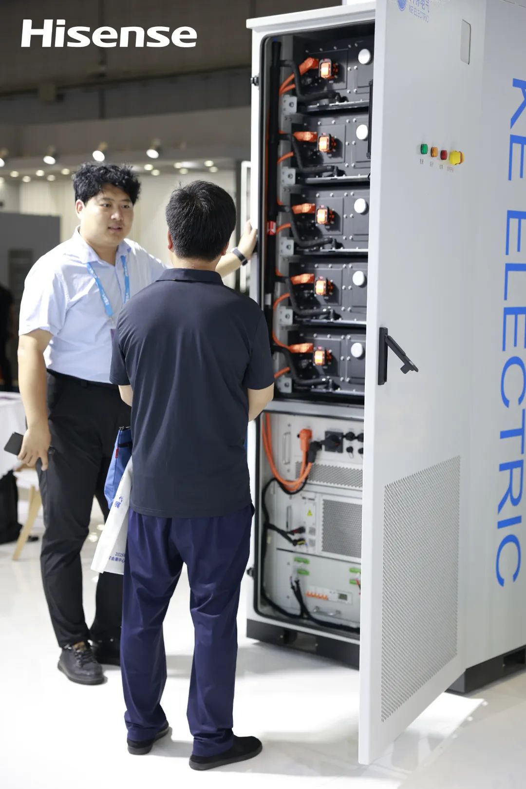 ?215kW/418kWh液冷储能柜(全新产品):单柜整合418kWh电池包、215kW PCS、BMS、EMS及温控、消防系统,核心部件100%自研自产。支持黑启动与VSG功能,可独立运行或并机扩容,满足中大型工商业园区灵活部署需求,单柜占地面积较传统方案减少,吸引现场众多行业客户驻足咨询。