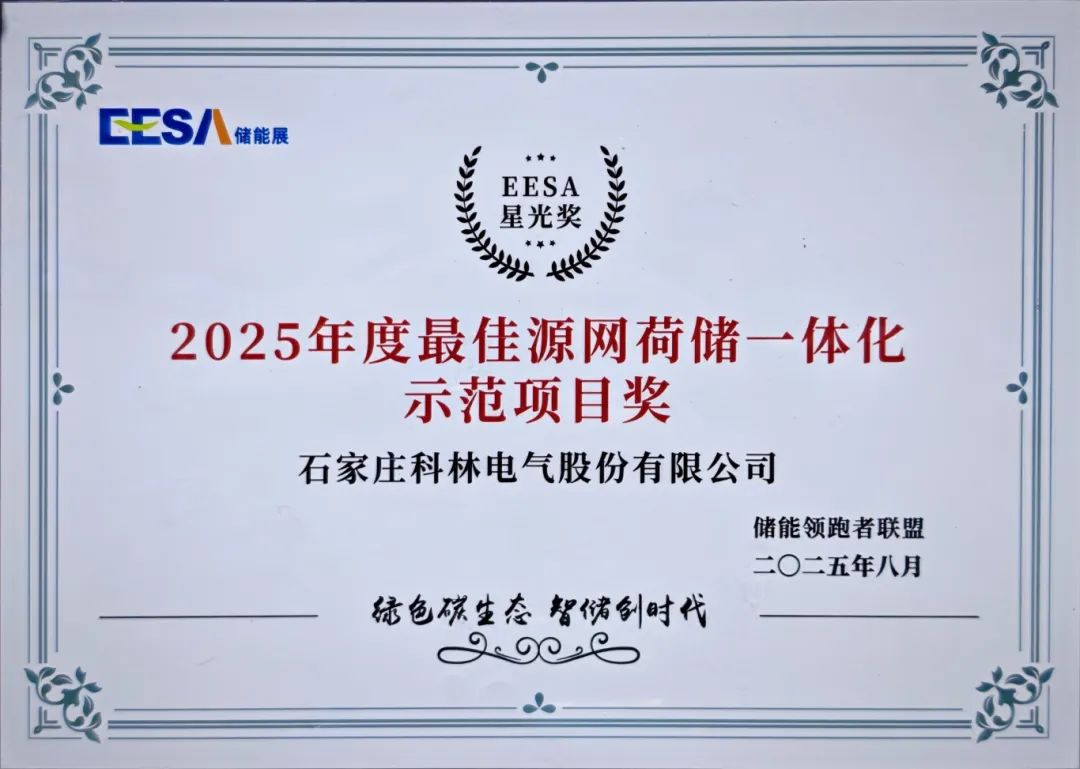 展会同期,科林电气凭借在源网荷储一体化领域的创新突破,荣膺EESA 2025年度“星光”系列“最佳源网荷储一体化示范项目奖”。这一荣誉不仅是对其产品可靠性与系统集成能力的肯定,更彰显了科林电气在产业链协同、客户价值创造上的综合优势。