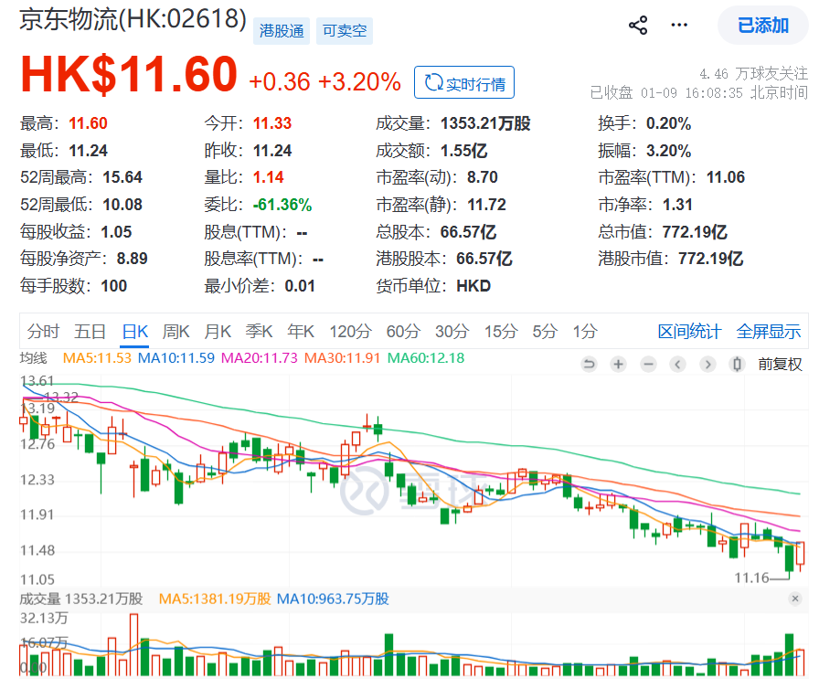 港股的京东物流(02618.HK)正常交易,没有异常情况发生。从德邦股份停牌前的盘面交易看,也没有出现异常变化。