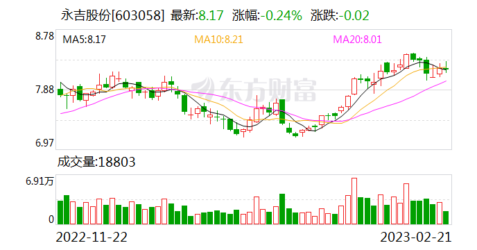 永吉股份户均持有流通市值高于行业平均水平。根据Choice数据,截至2023年2月20日,轻工制造行业A股上市公司平均户均持有流通股市值为22.66万元。其中,25.49%的公司户均持有流通股市值在8.5万~15万区间内。