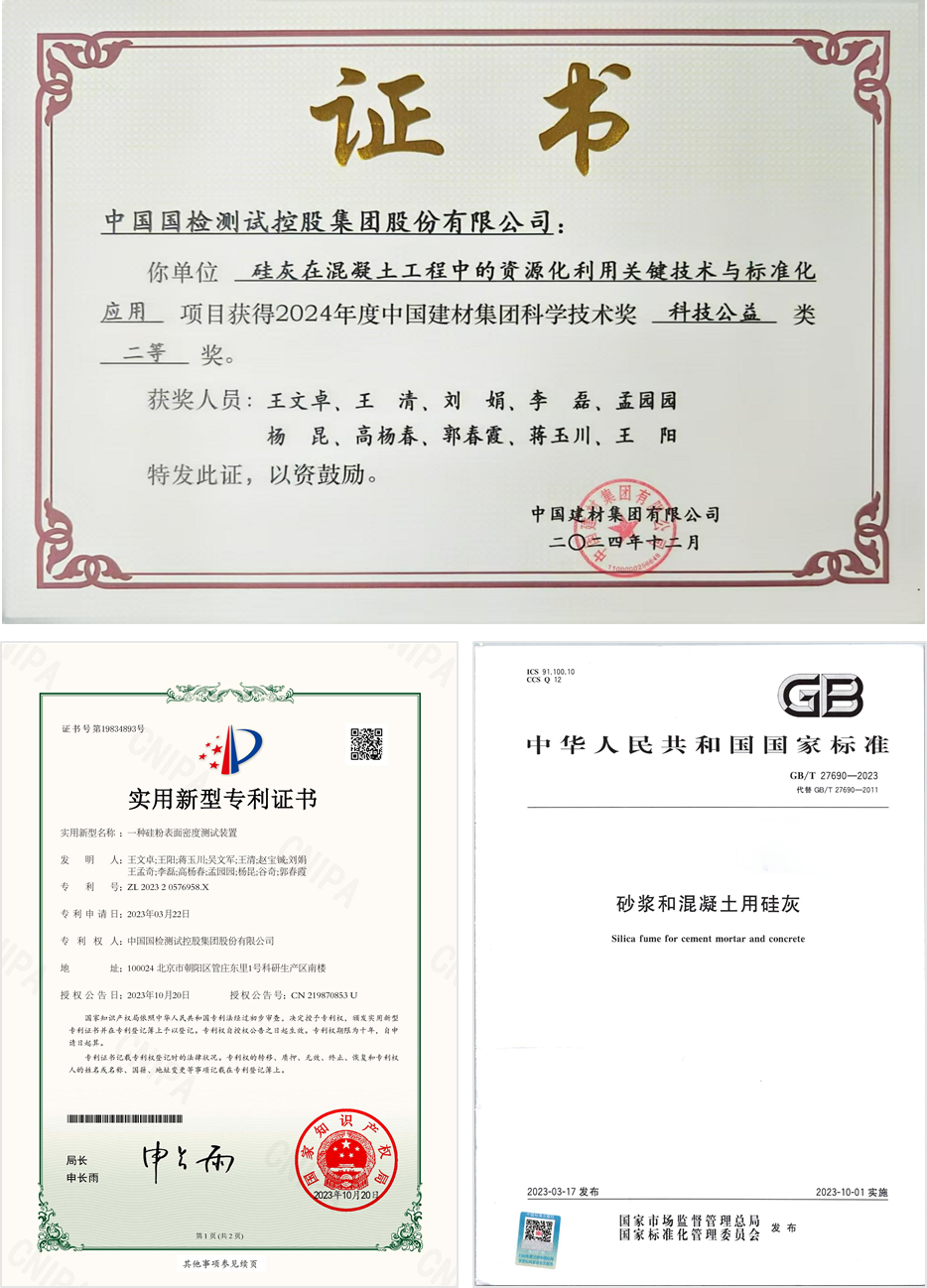 该项目分析了低SiO2含量的硅灰与现行标准要求的性能差异,研究了低SiO2含量硅灰对混凝土性能的影响规律,确定了产品质量评价参数及技术指标要求,完成了GB/T 27690《砂浆和混凝土用硅灰》国家标准的修订工作。将硅灰与粉煤灰、矿渣粉等矿物掺合料按特定比例混合、磨细,得到性能优异的复合掺合料。将复合掺合料作为配制高耐久性混凝土的胶凝材料,成功应用到实际工程中,为下一步制定硅灰的应用技术规程提供数据支持。