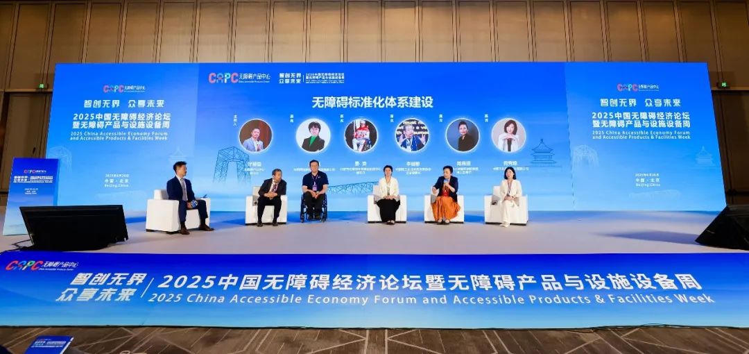 圆桌会谈环节,陈璐与中国轻工企业投资发展协会名誉理事长李国都、清华大学建筑学院教授博士生导师周燕珉、北京市无障碍环境建设促进中心副主任晏京、无障碍经济工作委员会秘书长叶晓雷、成都天佑晶创科技有限公司总经理何秀琼围绕“无障碍标准化体系建设”进行了对话与分享。陈璐深入分析了当前我国旅游景区无障碍设施建设现状及问题,提出从提升认知、优化政策、创新管理、完善标准、推广示范等多方面发力,推动景区无障碍设施从“有量”到“有质”转变,打造畅通的无障碍旅游体验,并介绍了国检集团围绕旅游景区无障碍标准所开展的研究与探索,以及CECS标准《旅游景区无障碍设施评价标准》的编制情况。