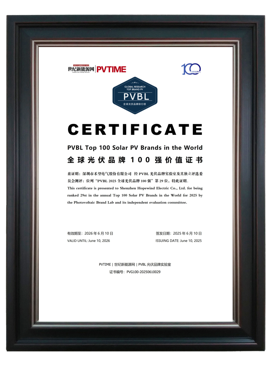 6月10日,“PVBL2025全球光伏品牌100强”榜单在上海重磅揭晓。该榜单是全球唯一专注于评价光伏品牌价值的调研排名活动,被誉为“全球光伏市场晴雨表”。禾望电气位列该榜单第29位,同时跻身“全球光伏品牌价值逆变器20强”,还一举斩获“PVBL2025 光储行业最具创新力企业”殊荣,综合实力获得业界高度肯定。
