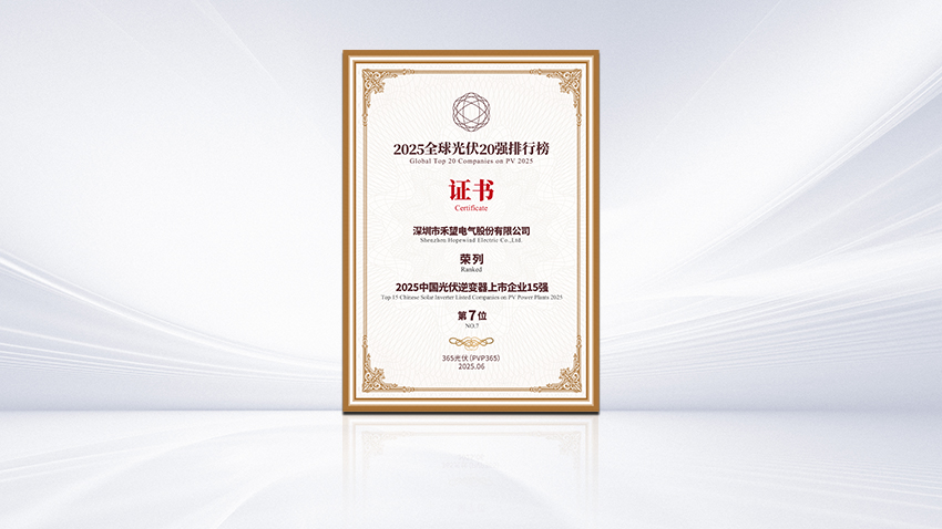 此外,由365光伏、365智慧能源发起并主办的“2025全球光伏20强排行榜”于6月20日正式发布。禾望电气再次脱颖而出,荣列“2025中国光伏逆变器上市企业15强”第7位,进一步印证了企业在光伏市场的稳健表现与行业地位。