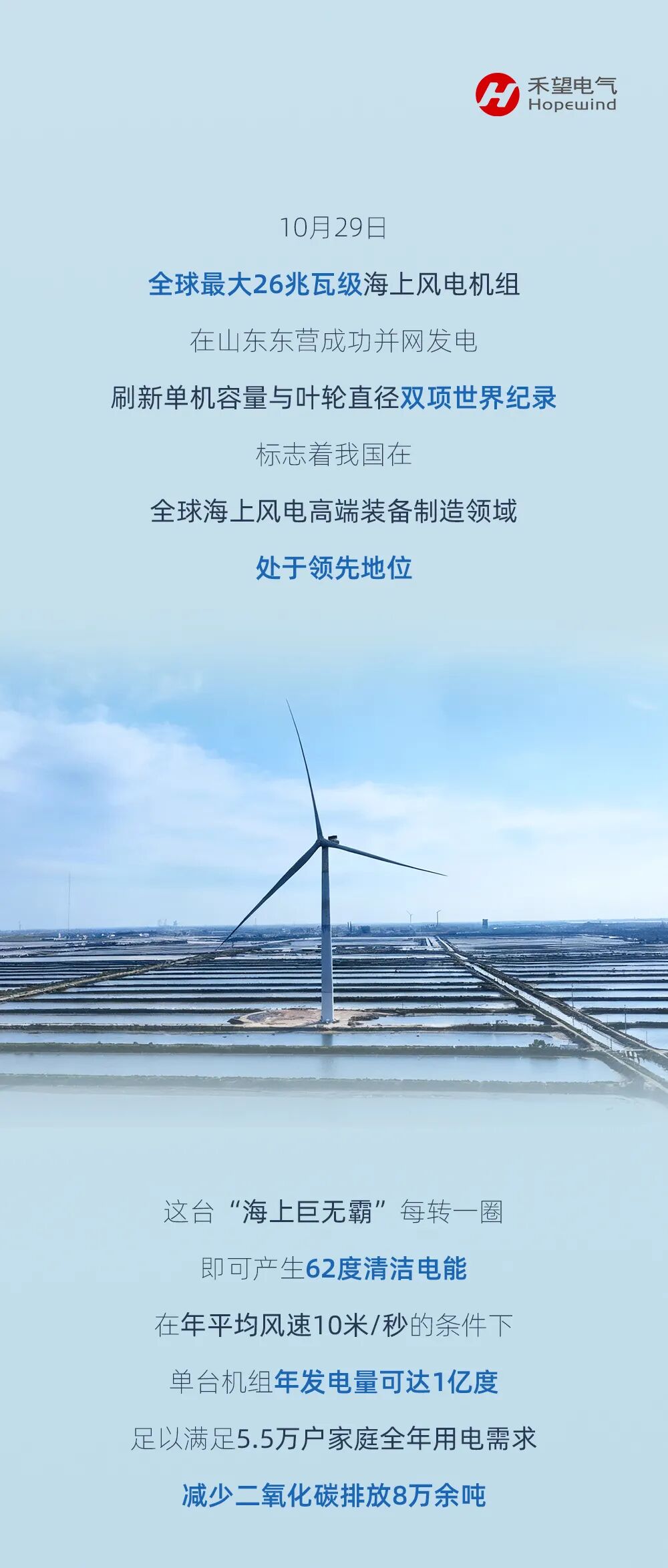 禾望电气助力全球最大26MW级海上风电机组并网发电