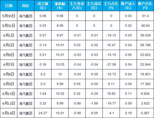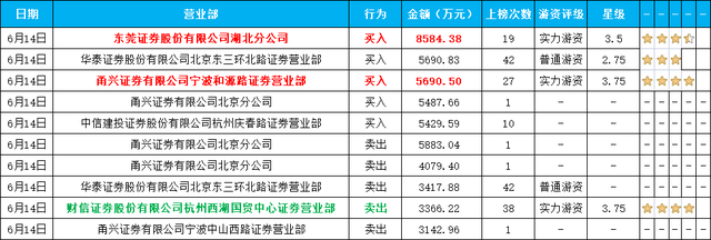 6月14日,海汽集团开盘高开,随后尾盘封板,当日最新龙虎榜数据显示,在买榜出现两家实力游资“东莞证券股份有限公司湖北分公司”、当日买入8584.38万元、最近3月上登上龙虎榜19次,游资评级3.5星。另一家是“甬兴证券有限公司宁波和源路证券营业部”、当日买入5690.5万元、最近3月上登上龙虎榜27次,游资评级3.75星。在卖榜中出现一家人气非常高的实力游戏“财信证券股份有限公司杭州西湖国贸中心证券营业部”、当日卖出3366.22万元、最近3月上登上龙虎榜38次,游资评级3.75星。