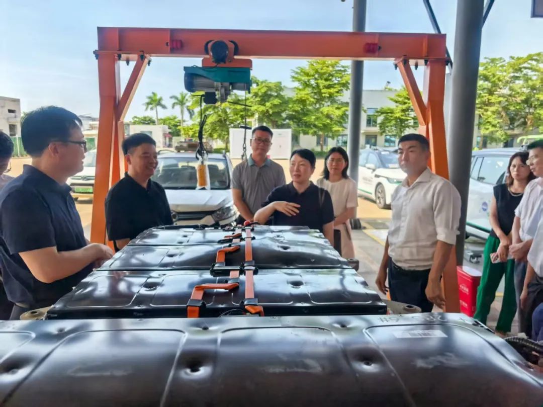 吴亚梅一行现场察看海汽新能源国际广场大厅、海汽凯迈新能源汽车维修车间,了解新能源汽车销售及维修业务情况。同时,详细了解无人驾驶项目落地运营情况。