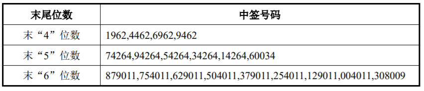 凡参与网上发行申购物产环能A股股票的投资者持有的申购配号尾数与上述号码相同的,则为中签号码。中签号码共有9.0389万个,每个中签号码只能认购1,000股物产环能A股股票。