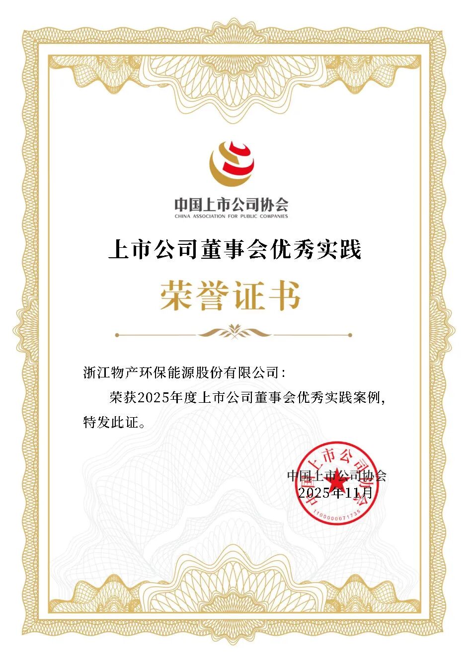 在 中国上市公司协会 组织的评选中,公司经过初审、专家评审及诚信核查等多轮严格评议,凭借董事会制度体系健全、运作规范高效、战略引领有力、风险管控扎实等优势,成功入选“2025年度上市公司董事会优秀实践案例”。这是公司连续第二年获此殊荣。